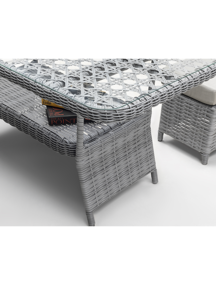 Birinci sınıf sentetik rattan el örgüsüyle üretilen bahçe mobilyalarımız, UV ışınlarına dayanıklı, geri dönüştürülebilir ve antibakteriyel yapısıyla dört mevsim konfor sunar. Alüminyum iskelet, nano teknoloji su itici minder kumaşı ve temperli camlı İtalyan tarzı masalarla uzun ömürlü şıklık arayanlara özel!