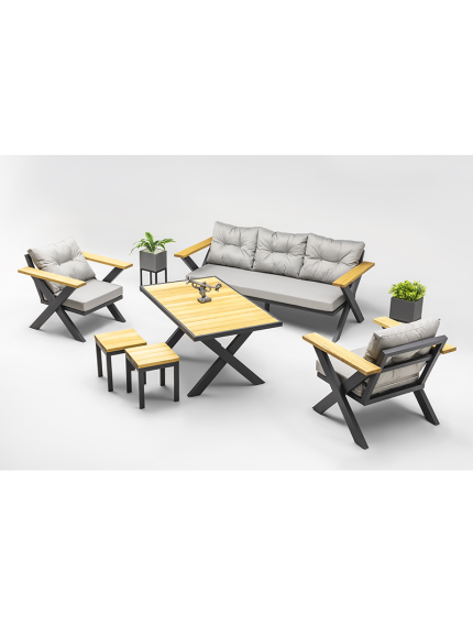Aksoy Home Garden Mobilya kalitesiyle üretilen bu set, modern tasarımı ve üstün malzeme özellikleriyle açık hava keyfinizi maksimuma çıkarır.