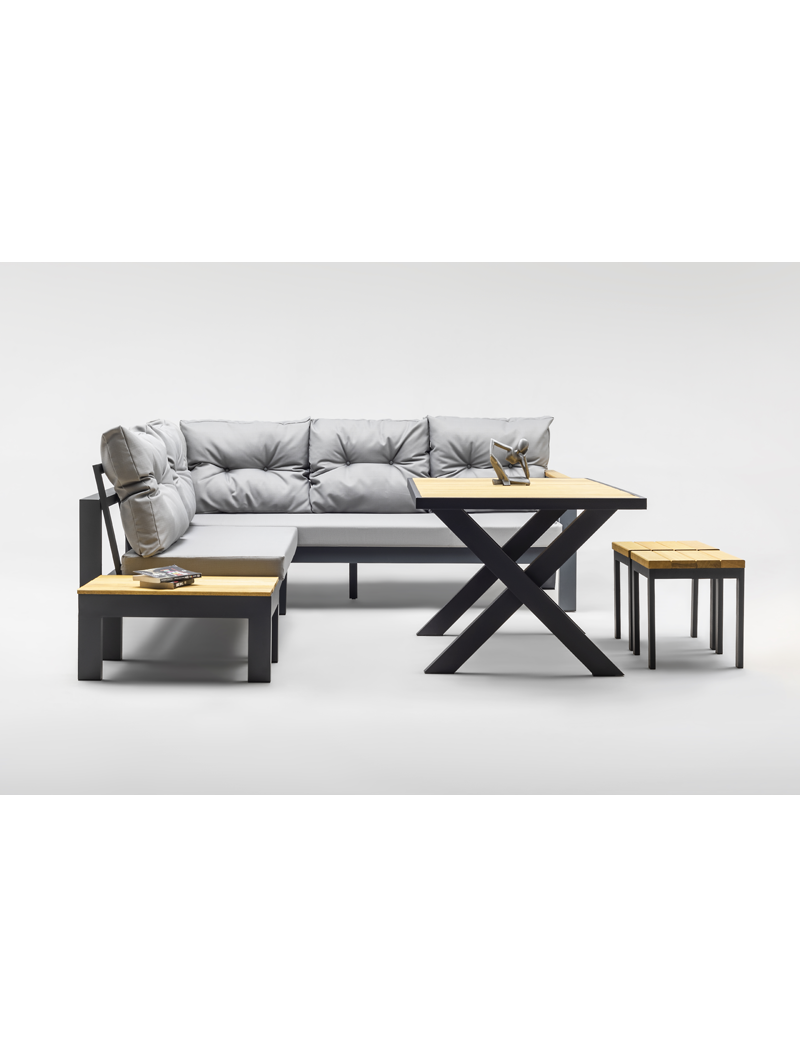 Aksoy Home Garden Mobilya kalitesiyle üretilen bu set, modern tasarımı ve üstün malzeme özellikleriyle açık hava keyfinizi maksimuma çıkarır.