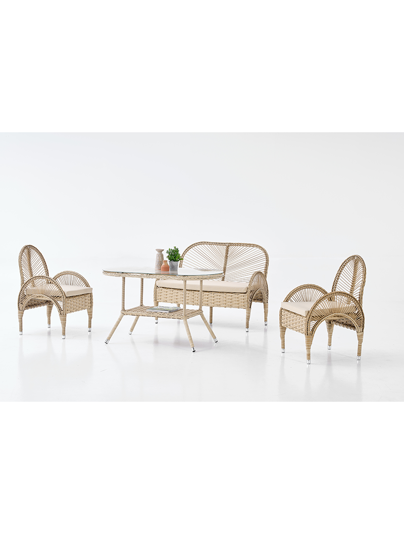 Birinci sınıf sentetik rattan el örgüsüyle üretilen bahçe mobilyalarımız, UV ışınlarına dayanıklı, geri dönüştürülebilir ve antibakteriyel yapısıyla dört mevsim konfor sunar. Alüminyum iskelet, nano teknoloji su itici minder kumaşı ve temperli camlı İtalyan tarzı masalarla uzun ömürlü şıklık arayanlara özel!