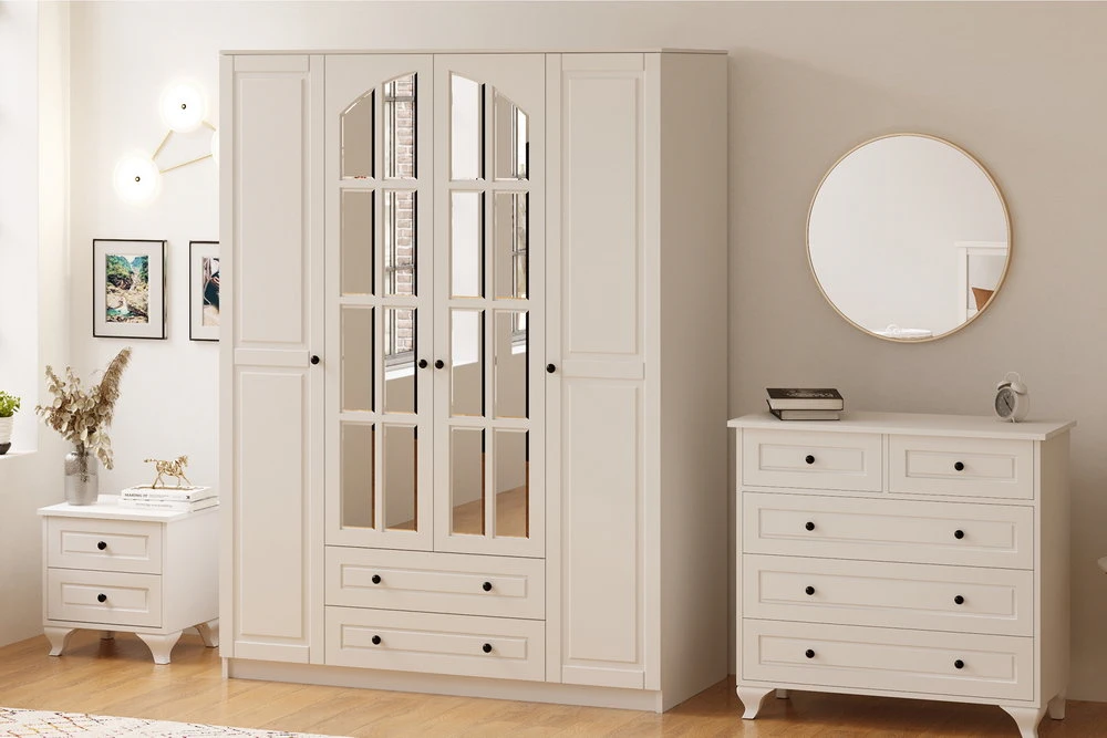 Beyza Country 4 Kapak 2 Çekmeceli Gardırop Şifonyer Komodin Takımı