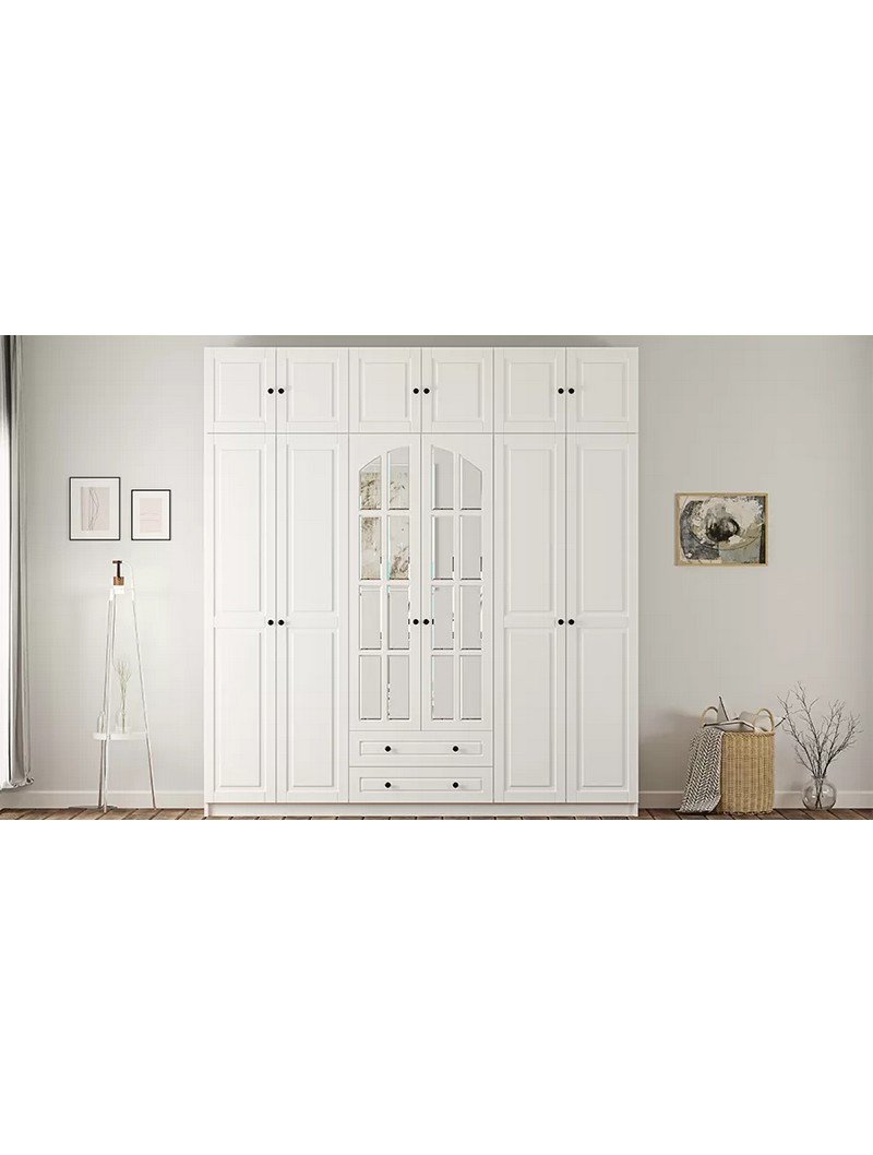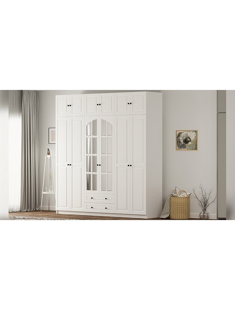 Beyza Country 6 Kapak 2 Çekmece Yüklüklü Mega Gardırop