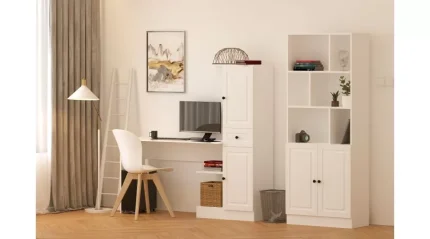 - Başlıklar ve Kapaklar: Mat beyaz yonga levha üzeri çıtalı