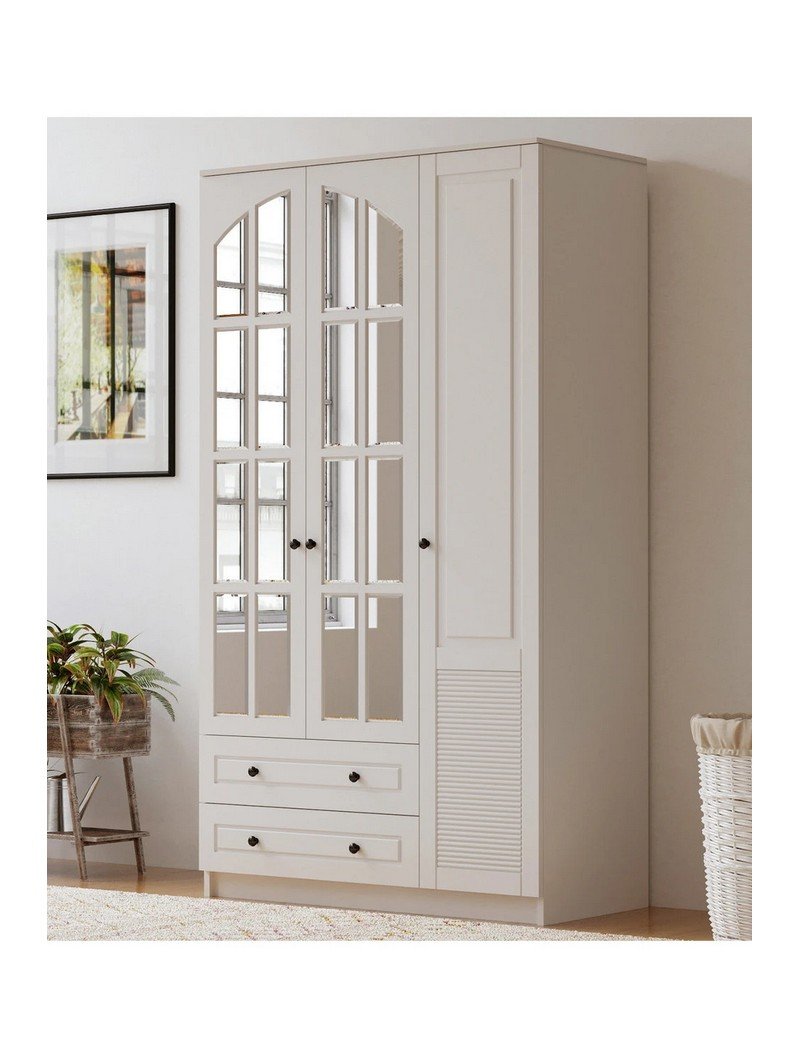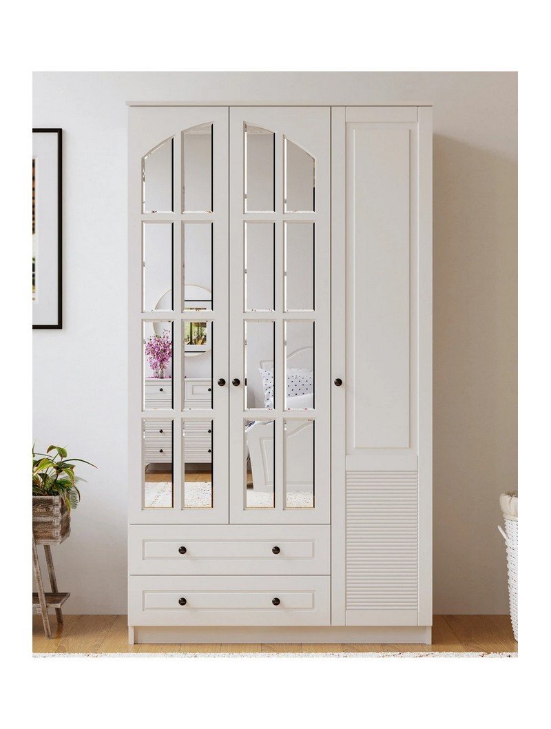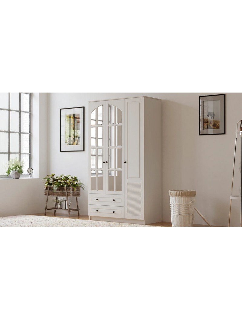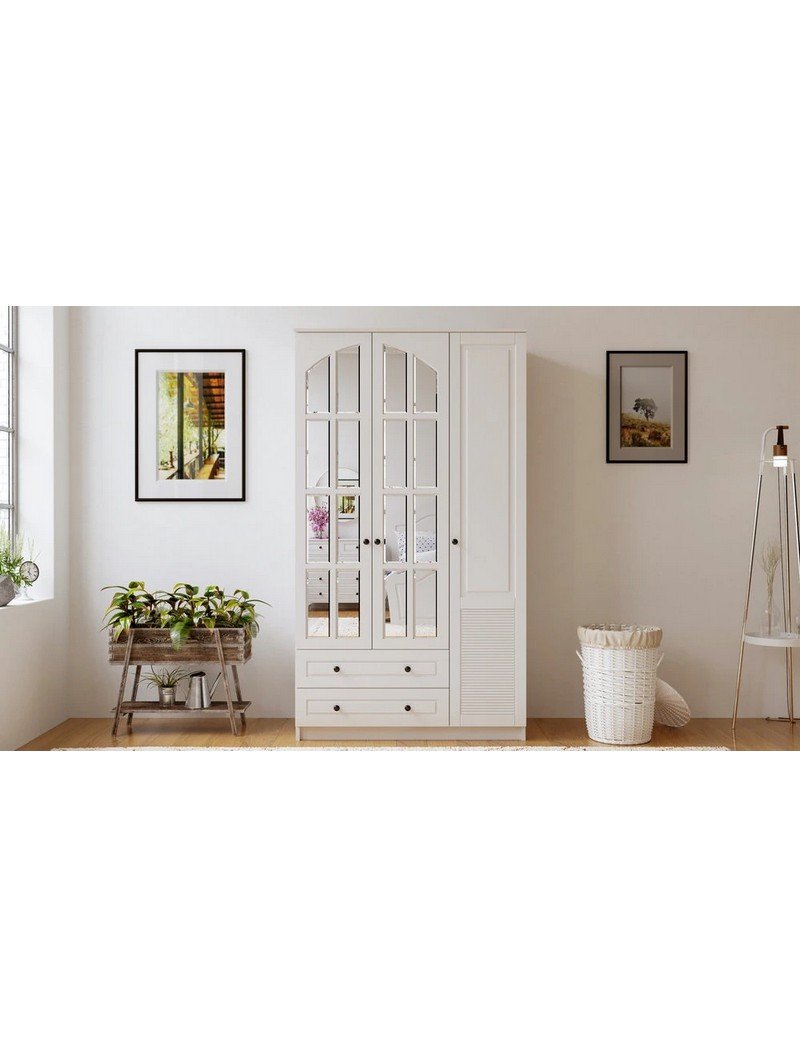 İzel 3 Kapak 2 Çekmeceli Gardırop