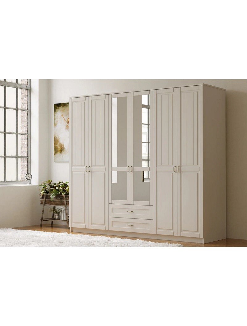 Kardelen 6 Kapak 2 Çekmeceli Mega Gardırop