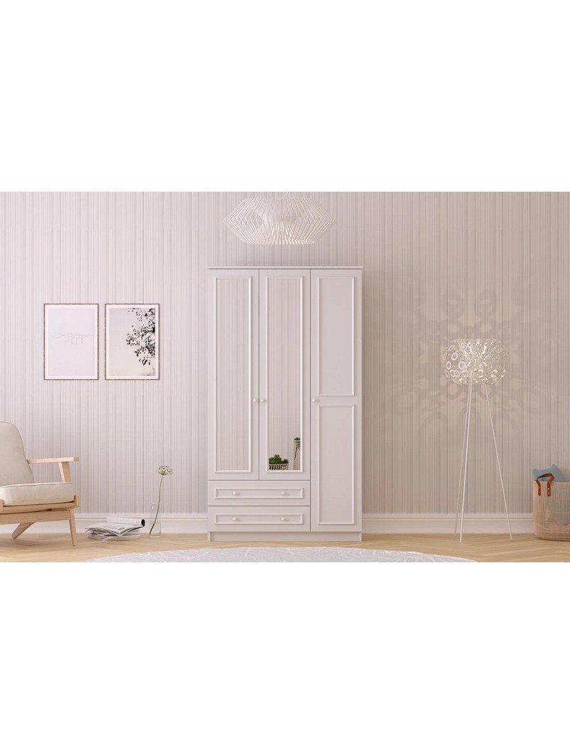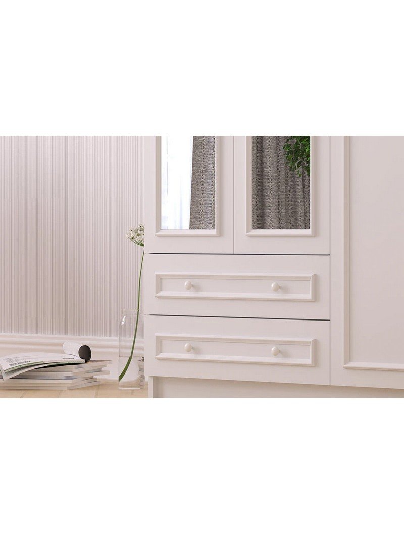 Lina Country 3 Kapak 2 Çekmeceli Aynalı Mega Gardırop