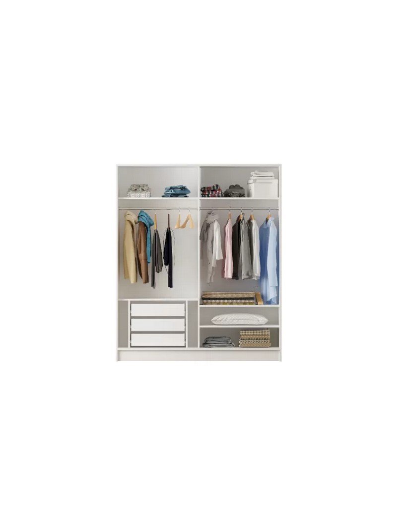 Kasa: Mat beyaz, Kapaklar. Beyaz. 3 adet gizli çekmece sistemi 4 adet sabit raf 2 adet alüminyum askılık |