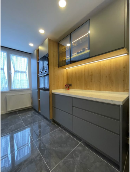 Aksoy Home Garden Mobilya olarak, mutfağınızın ölçülerine ve tarzınıza uygun özel üretim dolaplarla estetik ve fonksiyonu bir araya getiriyoruz.