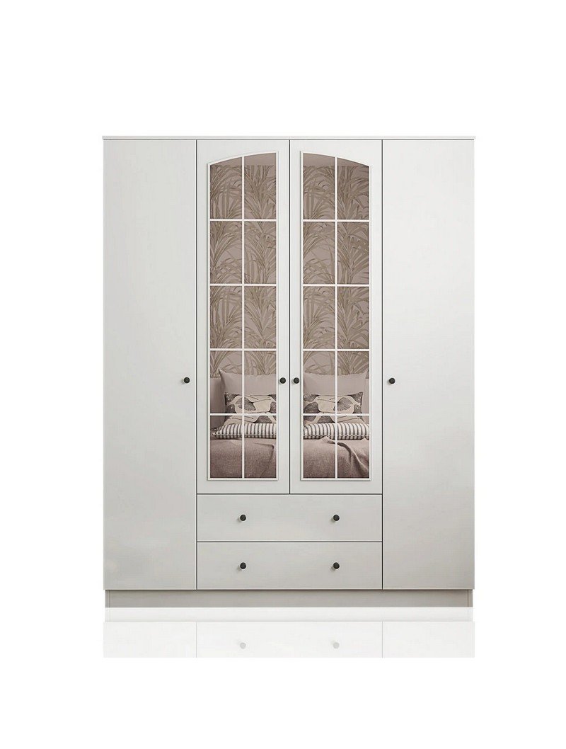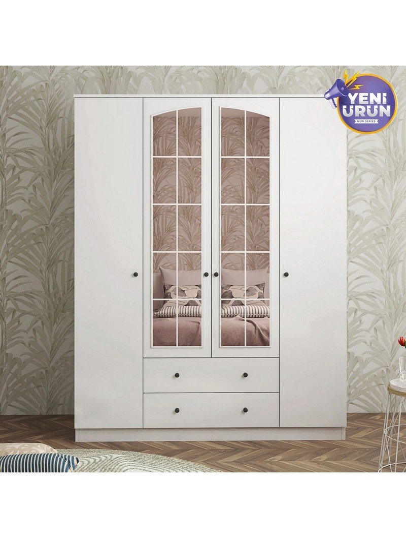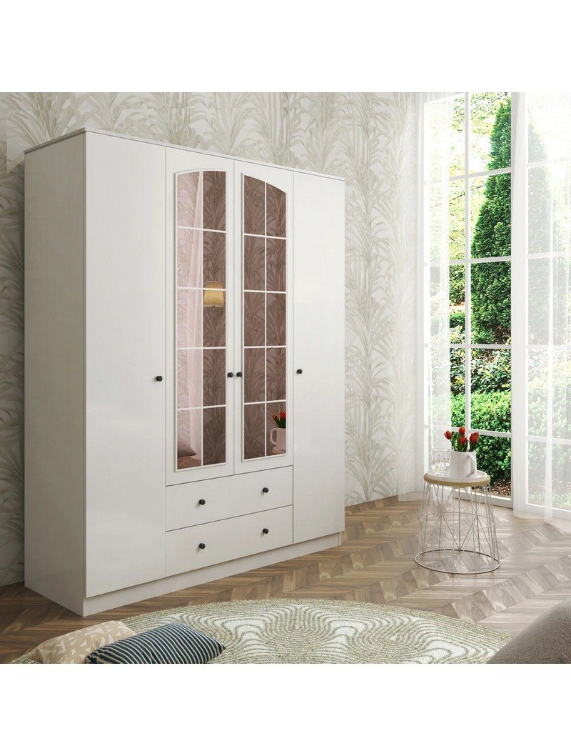 Rose 4 Kapak 2 Çekmece Aynalı Mega Gardırop